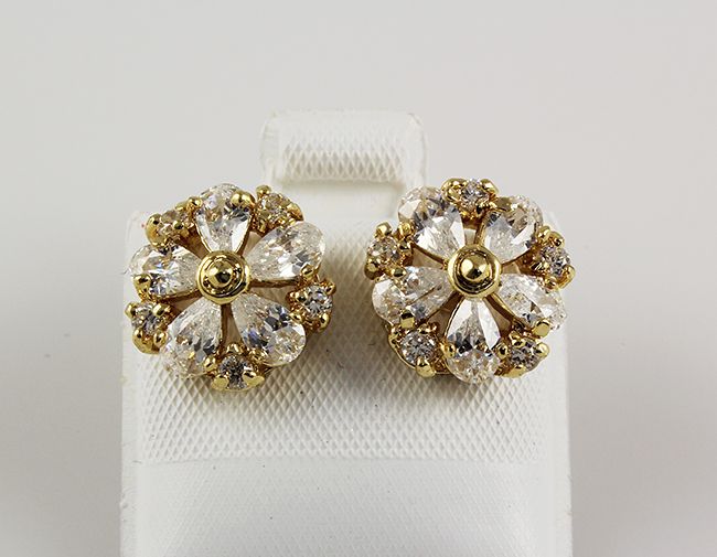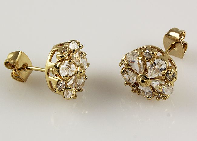 Gold Plated Round Flower Stud Erring w/ Clear Crystal **|**|** Fashion Jewelry Round Flower Design Gold Plated Stud Earring with Diamond Swarovski Crystal ; MSRP: $100