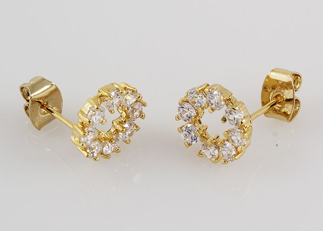 Gold Plated Round Stud Earring with Clear Crystal **|**|** Fashion Jewelry Gold Plated Round Stud Earring with Diamond Swarovski Crystal Around ; MSRP: $100