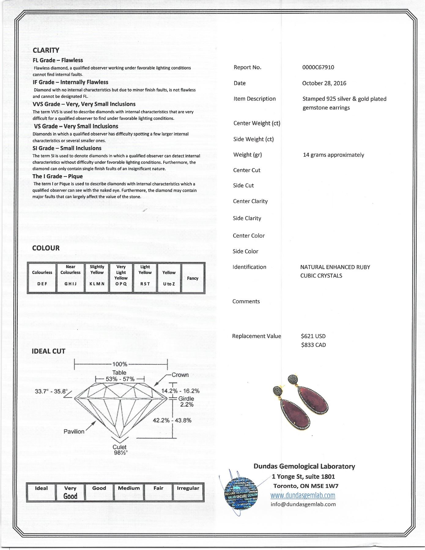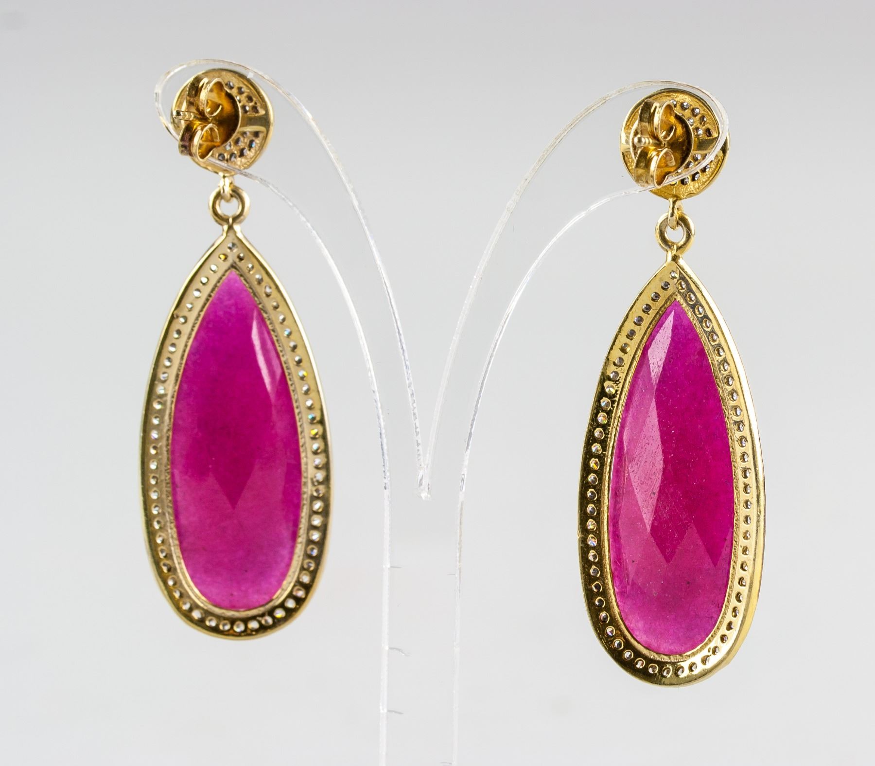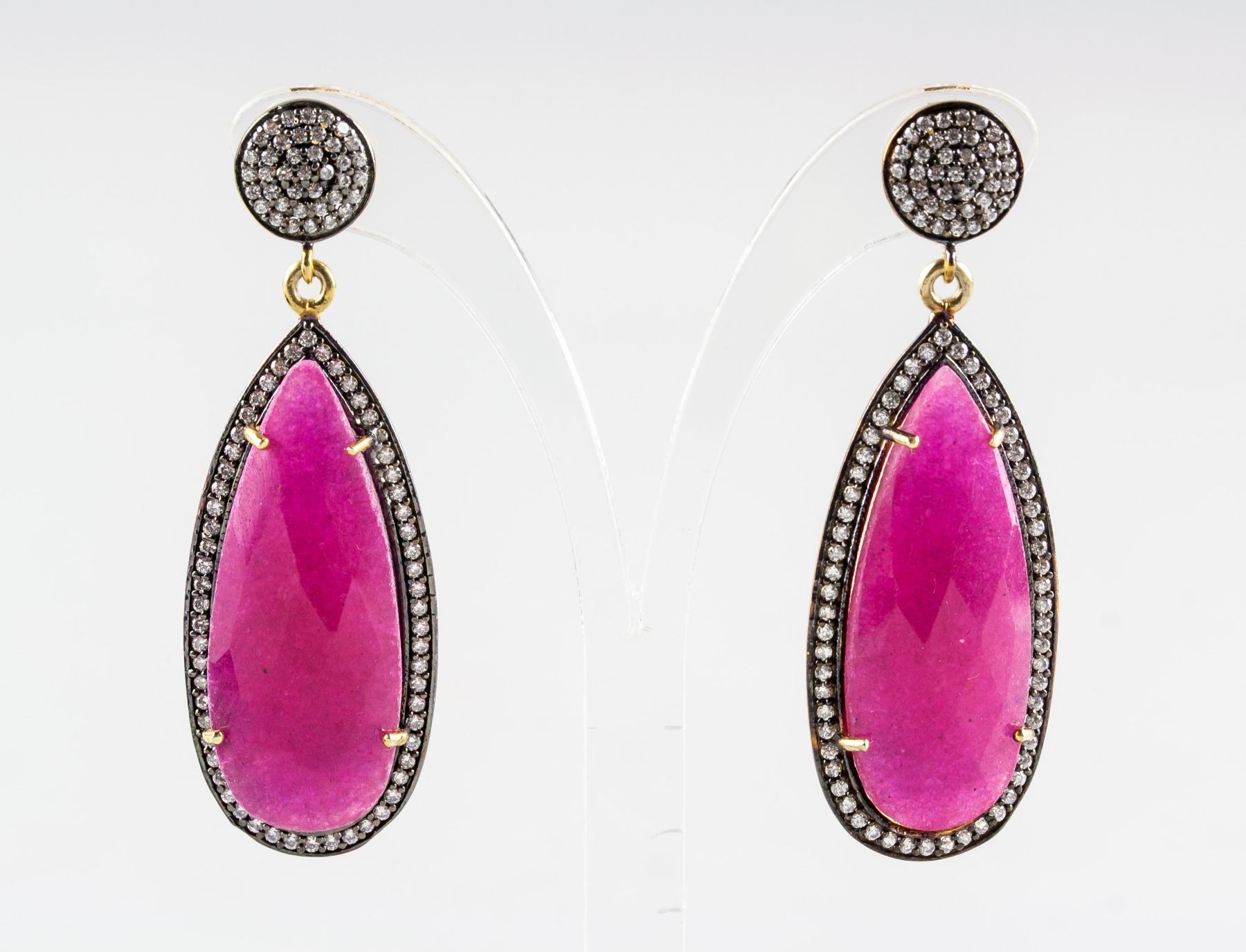 Stamped 925 silver and gold plated earrings, set with natural enhanced ruby and cubic crystals. Certified replacement value $833. 14 grams approximately.