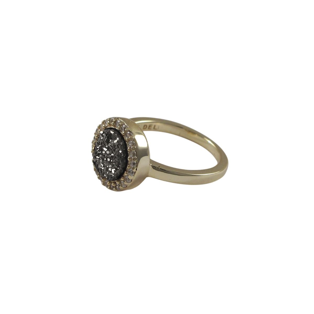 Gold Plated Sterling Silver, 11Mm Round Circe, 8Mm Grey Druzy Natural Stone With CZ Border, Ring Siz
