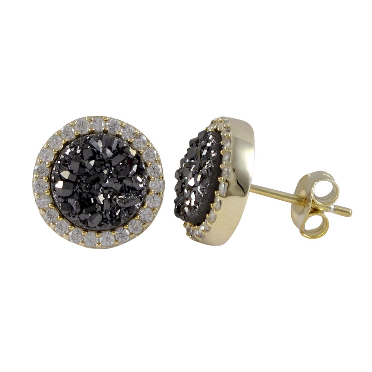 Gold Plated Sterling Silver, 11Mm Round Circle, Wine 8Mm Druzy Natural Stone With CZ Border, Post St