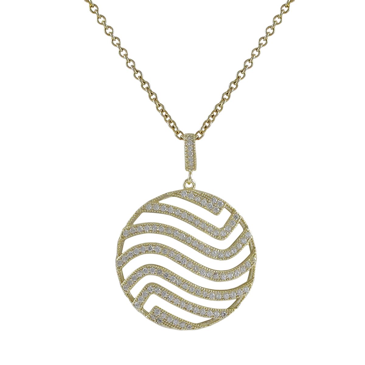 Gold Plated Sterling Silver 28Mm Round Wave CZ Pendant, 1.48&Quot;