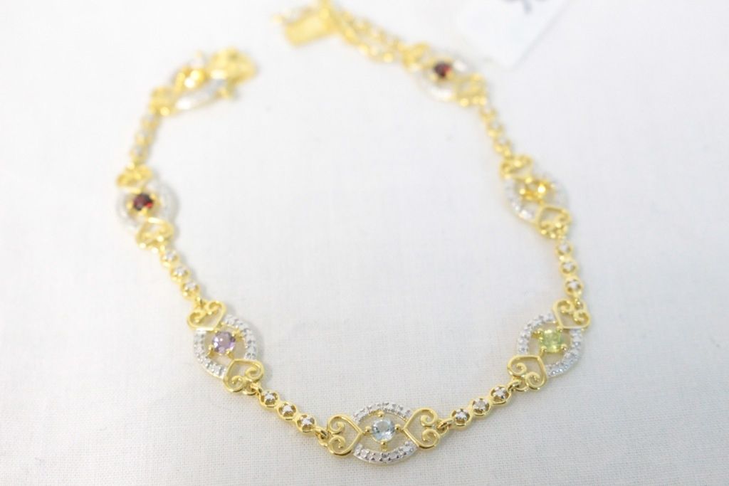Gold Plated Sterling Silver Bracelet With Genuine Amethyst, Peridot and Blue Topaz, Citrine and Garnet
