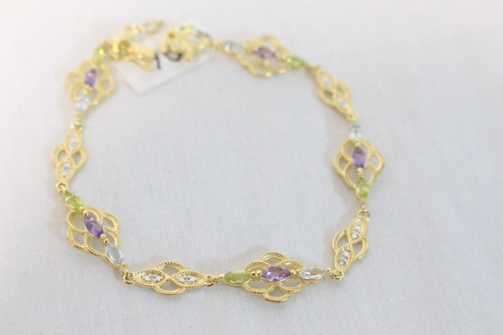 Gold Plated Sterling Silver Bracelet With Genuine Amethyst, Peridot and Blue Topaz