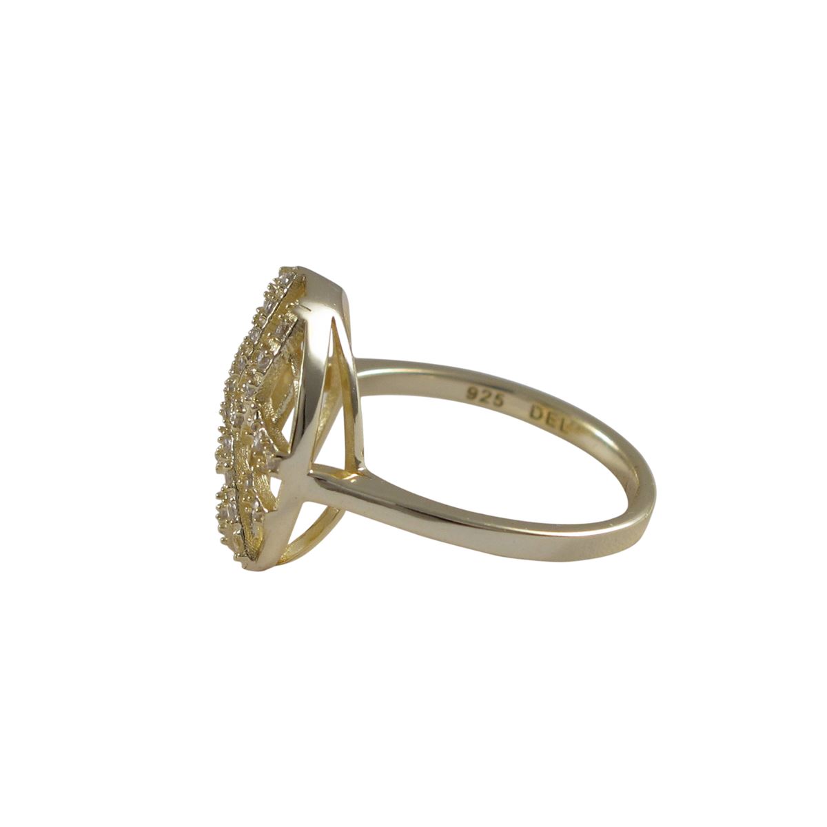 Gold Plated Sterling Silver CZ Ring,16Mm Circle With Half Circle Design, Size 6