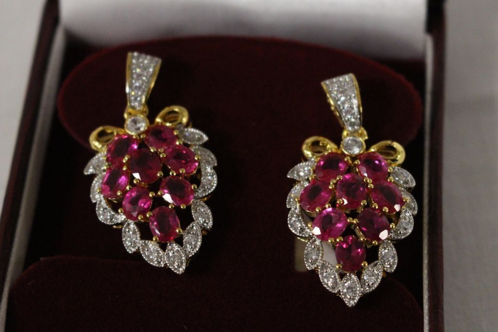 Gold Plated Sterling Silver Earrings With Synthetic Rubies and C.Z.