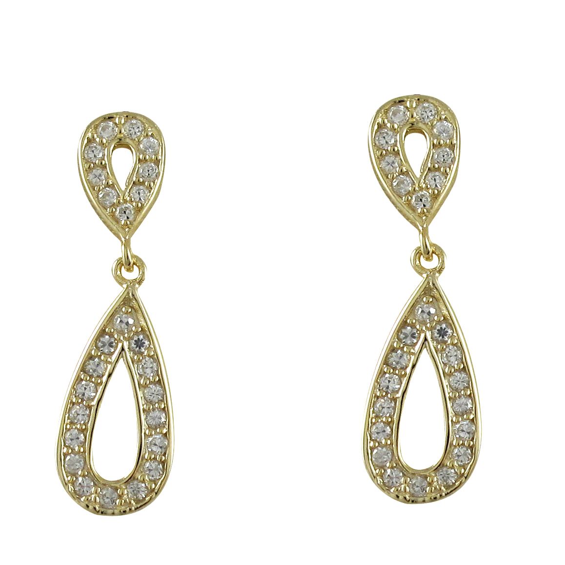 Gold Plated Sterling Silver, Open Teardrop CZ Post Earrings, 1&Quot;