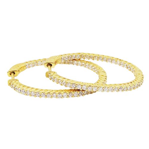 Gold Plated Sterling Silver Oval CZ Hoop Earrings