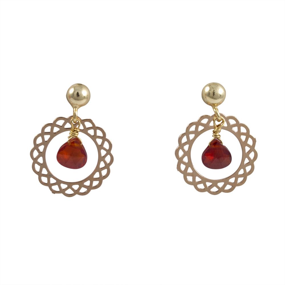 Gold Plated Sterling Silver Post Earrings With Filagree Circle And Assorted Colors Teardrop CZ