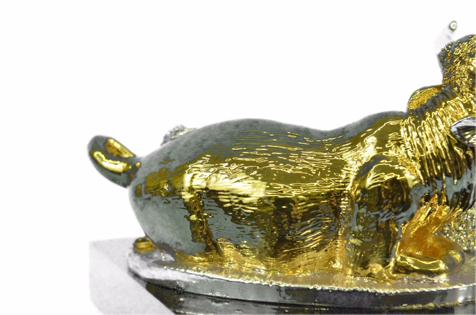 Each sculpture is crafted by hand and electroplated with a secret technique. You can see the great detail and craftsmanship. It takes 3-6 months and more than 25 steps to complete one piece, makingEach one unique and meaningful. The sculpture comes in a beautiful Gift Box and is the perfect way to show your everlasting love for your significant other or friends. Sculpture Dimensions: Height 3 X Width 4 inches. Weight: 1 LBS. Inventory: 54SHO438-1NT3143