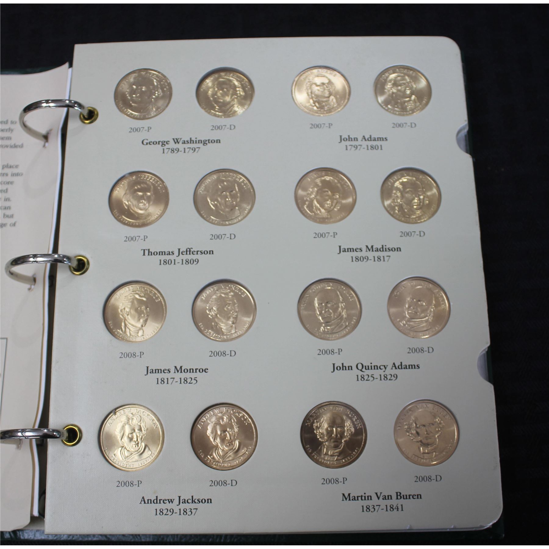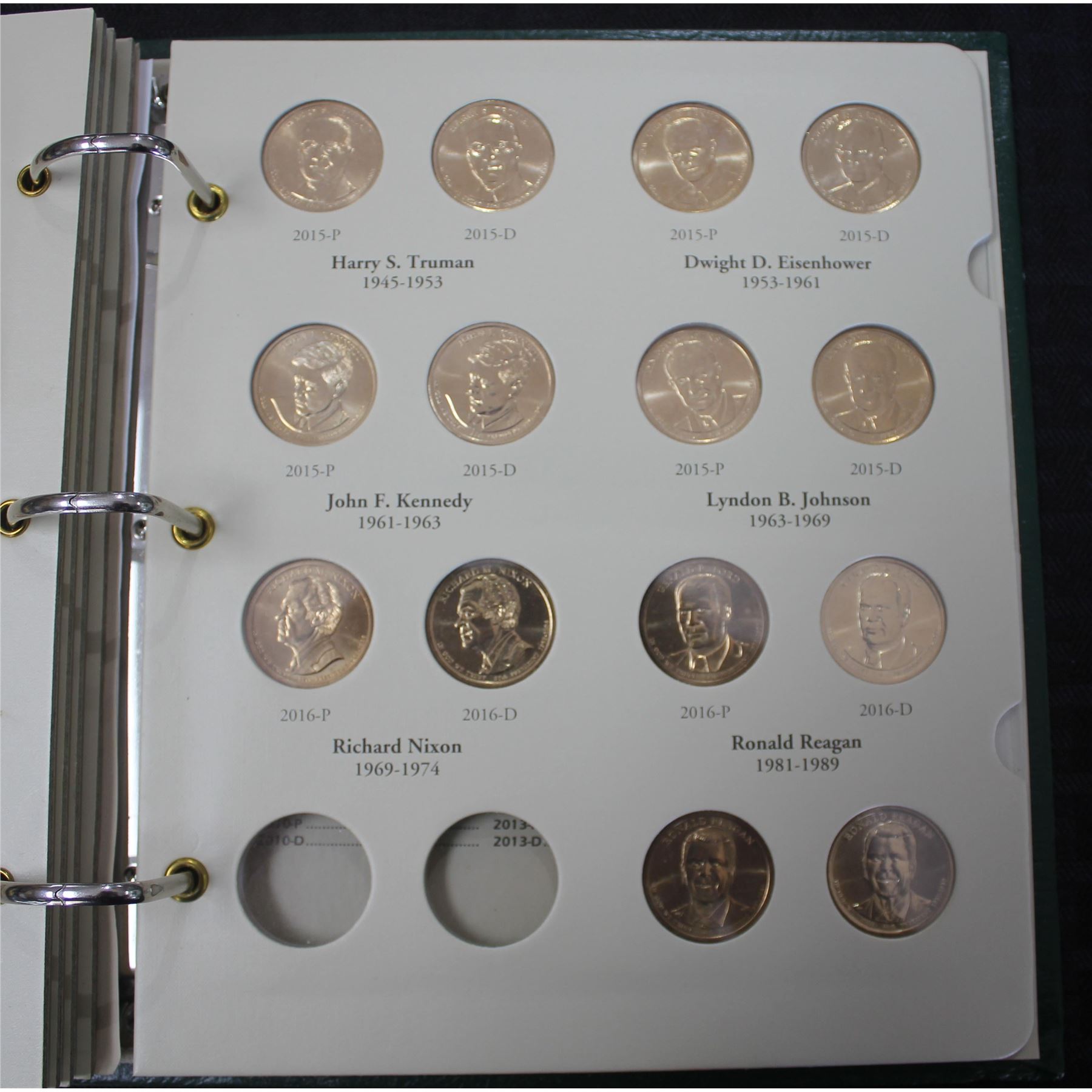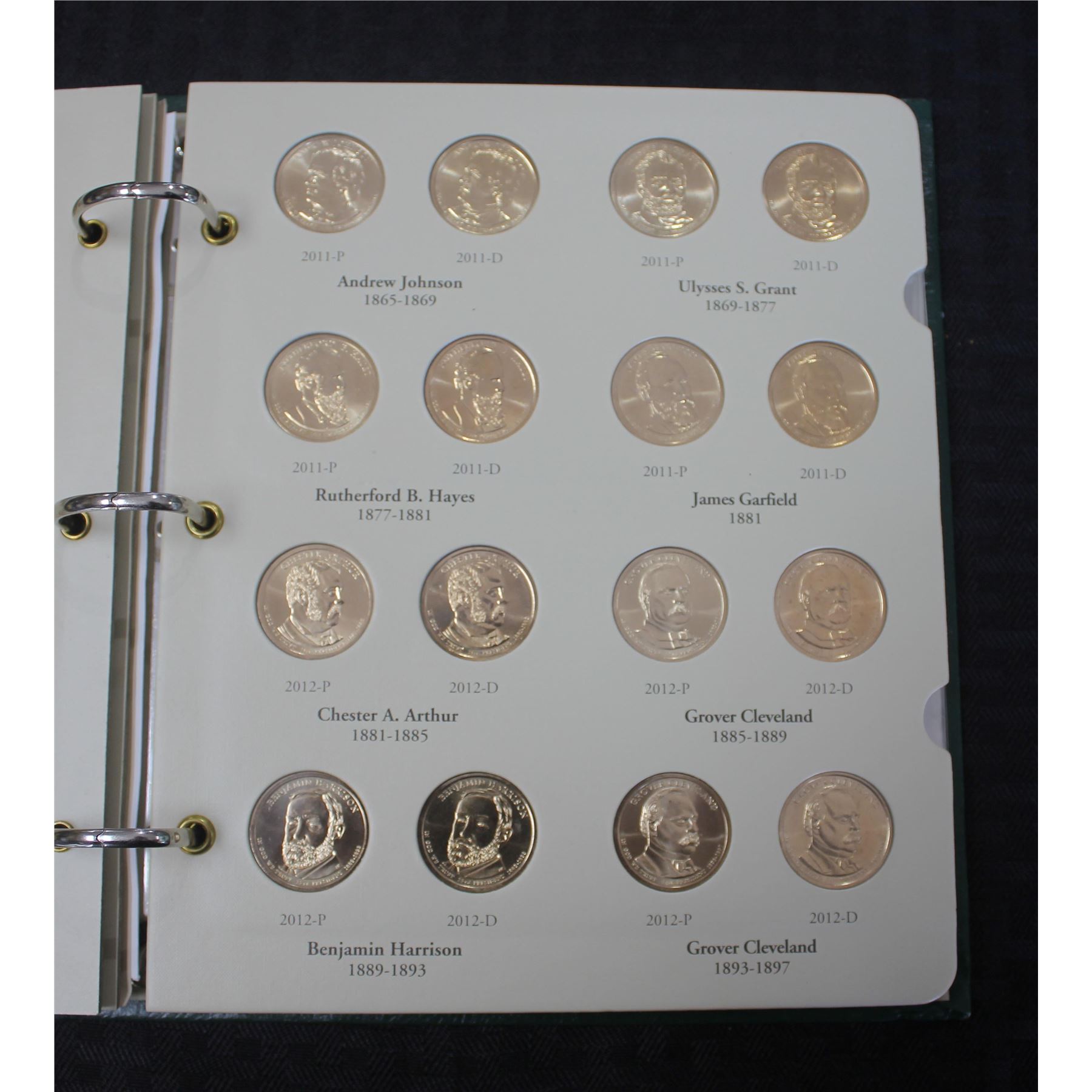Complete Presidential dollar coin set. Lot of 78 P+D different Presidential dollar coins in "Brilliant Uncirculated" Condition. Most of these coins are from Mint sets. In custom Littetown album.