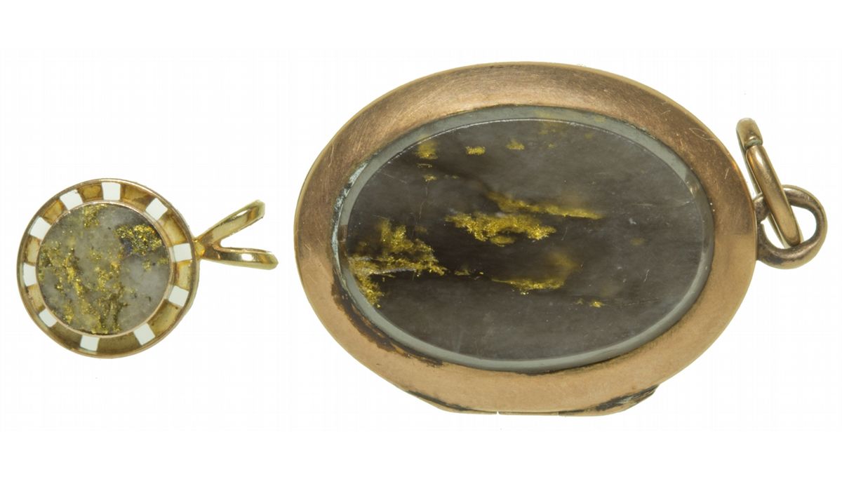 Lot of 2 antique gold pendants. Total weight of 0.27 troy ounces. Smaller one is 3/8 diameter. The larger one opens and originally held a photograph. HKA#62643
