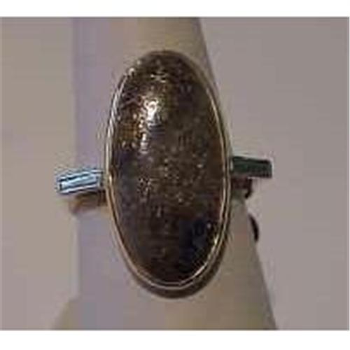 Grey Quartz with Gold and Silver Natural Deposits with the Alloy in the Middle of the Stone ** Seldom is this kind of combination found in quartz ** Oval Stone Measures 3/4 inch long and 3/8 inch wide ** Very Unusual ** Size 7