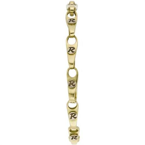 <B>Gold Bracelet</B></I><BR><BR>The fancy link bracelet features the letter "R" atop each link in 18k yellow gold with rhodium finished accents. Gross weight 16.10 grams. <BR><I>Dimensions: 7 inches x 1/4 inch</B></I> <B>Condition Report:</B> Good condition.<BR><BR><BR><b>Shipping:</b> Miscellaneous Collectibles, Smal (<a target="_blank" href="http://www.heritageauctions.com/common/shipping.php">view shipping information</a>)