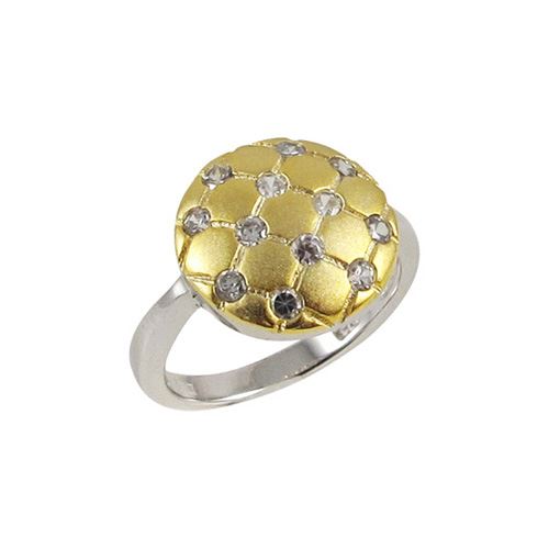 Gold & Rhodim Over Sterling Silver Ring, Square Design On 12Mm Round Circle With White Czs