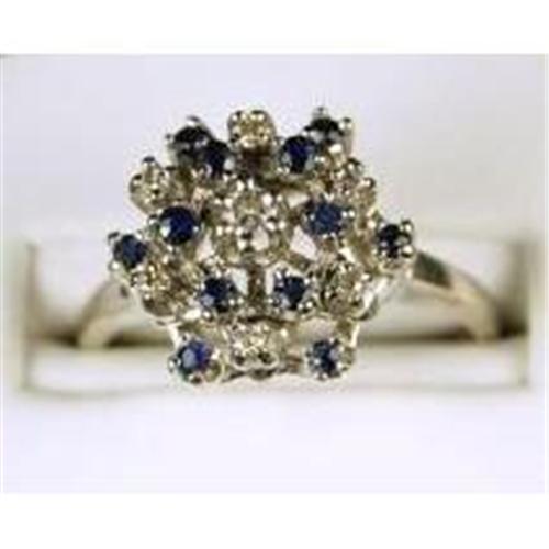 10K White Gold Ring featuring a tiered cluster of 12 SAPPHIRES and 7 DIAMONDS. This ring is a Size 7 and I can resize it for you.