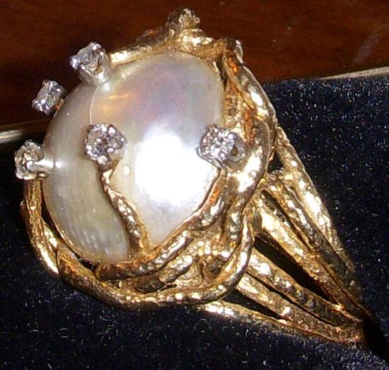 A Georgeous Ring. With Diamonds and Pearl. size 5 1/2 and can be sized with no problem.