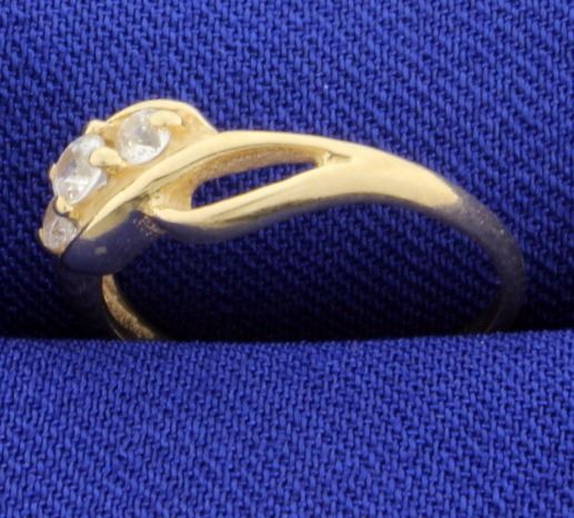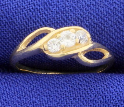 This 10K yellow gold ring contains one .08ct and two .05ct round CZs with beautiful color and clarity. Size 4 1/4 1.6g