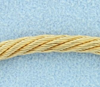 The bracelet is 14K yellow gold and is 8 inches long and 3mm wide. With a unique clasp that contains a cabochon natural sapphire. 13.3g