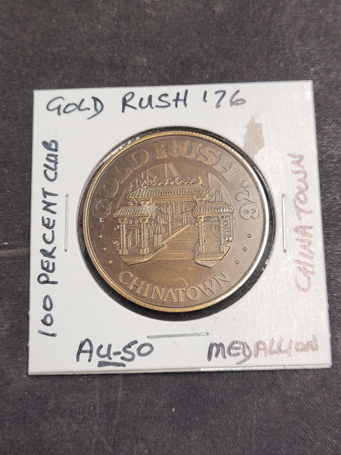 Gold Rush '76 100 Percent Club Chinatown Medallion. AU-50