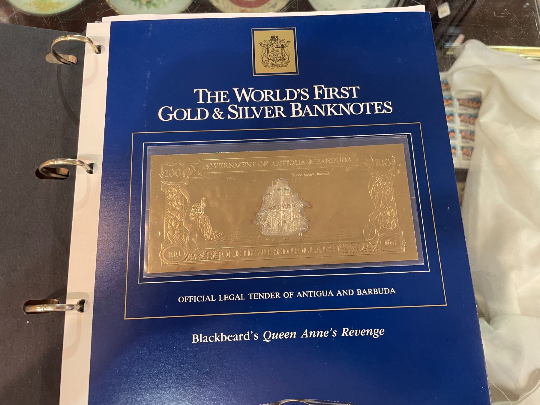 Gold & Silver Banknotes, The Saga of Treasure Ships and Pirates.Official Legal Tender of Antigua and Barbuda. 20 Pages of $100 Notes in binder.