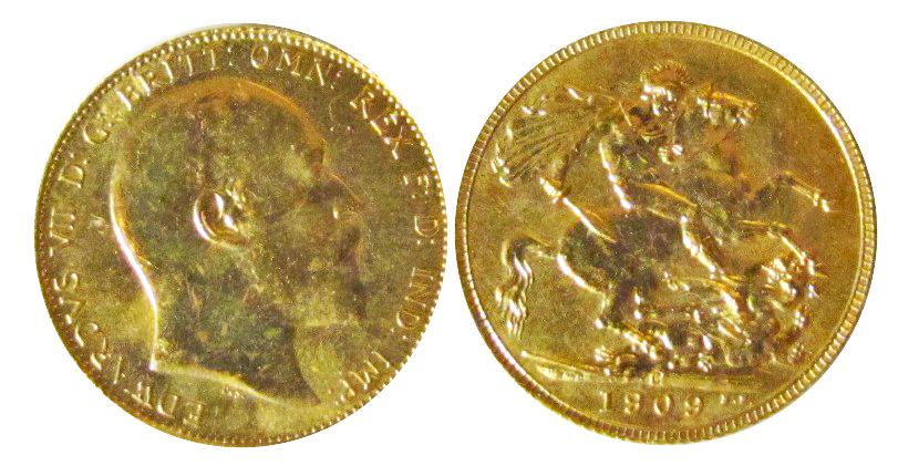 Gold Sovereign 1909c ICCS MS64. Nice orange tone with full lustre. A rare date in mintstae condition.