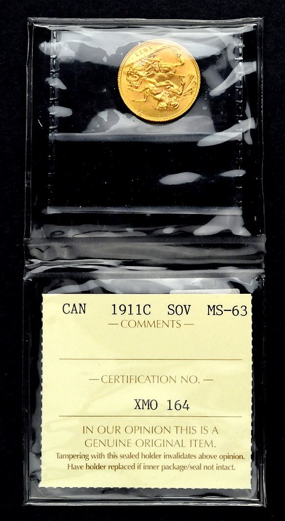 Canada, Gold Sovereign, 1911C, certified ICCS MS-63