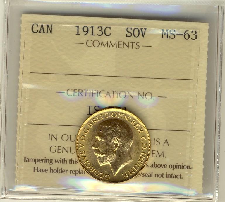 Gold Sovereign 1913c ICCS MS63. Nice surfaces with full lustre.