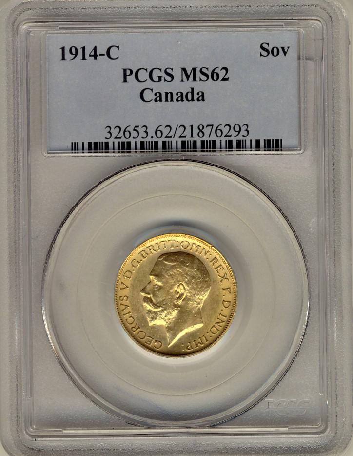 Gold Sovereign 1914c PCGS MS62.