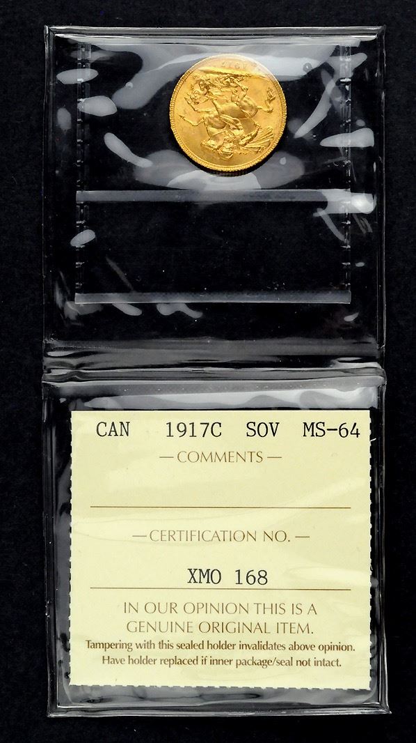 Canada, Gold Sovereign, 1917C, certified ICCS MS-64