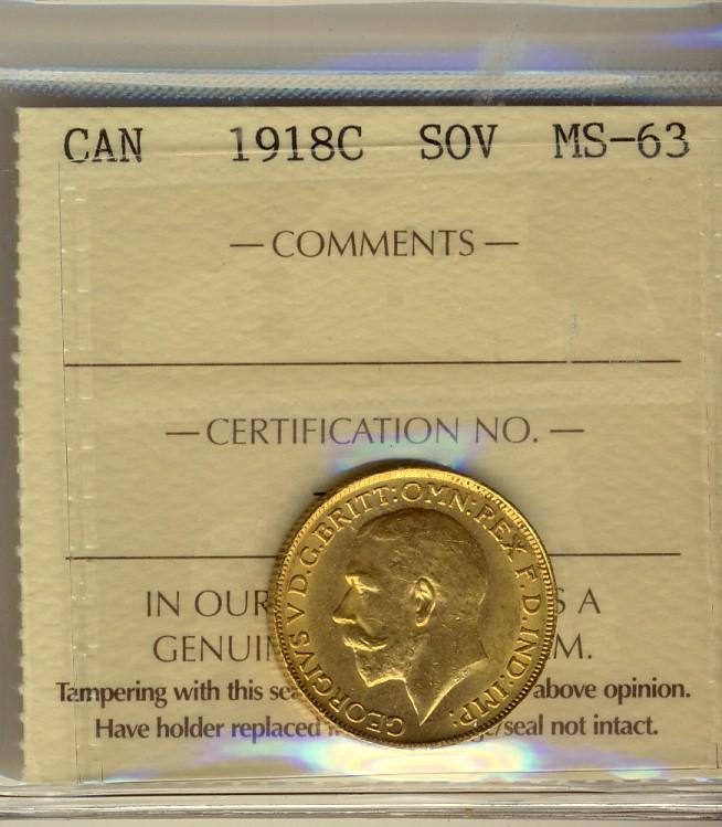 Gold Sovereign 1918c ICCS MS63. A nice and lustrous example.