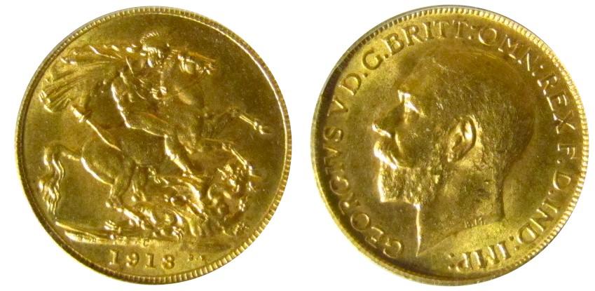 Gold Soveriegn 1913c PCGS MS64. Nice lustre and clean fields. Scarce this nice.