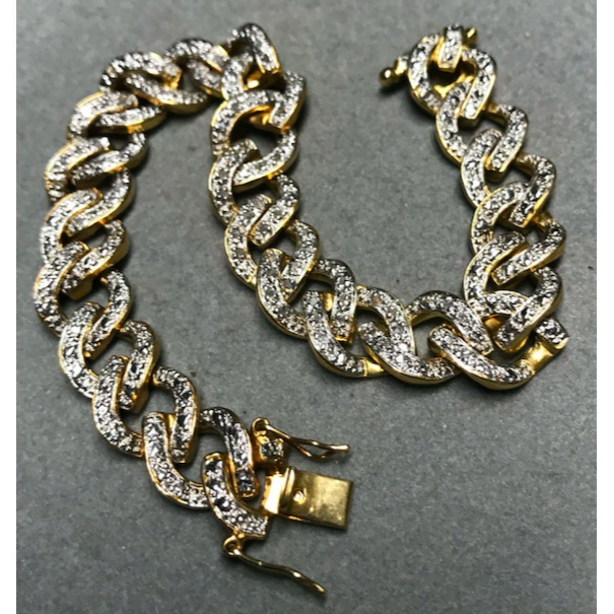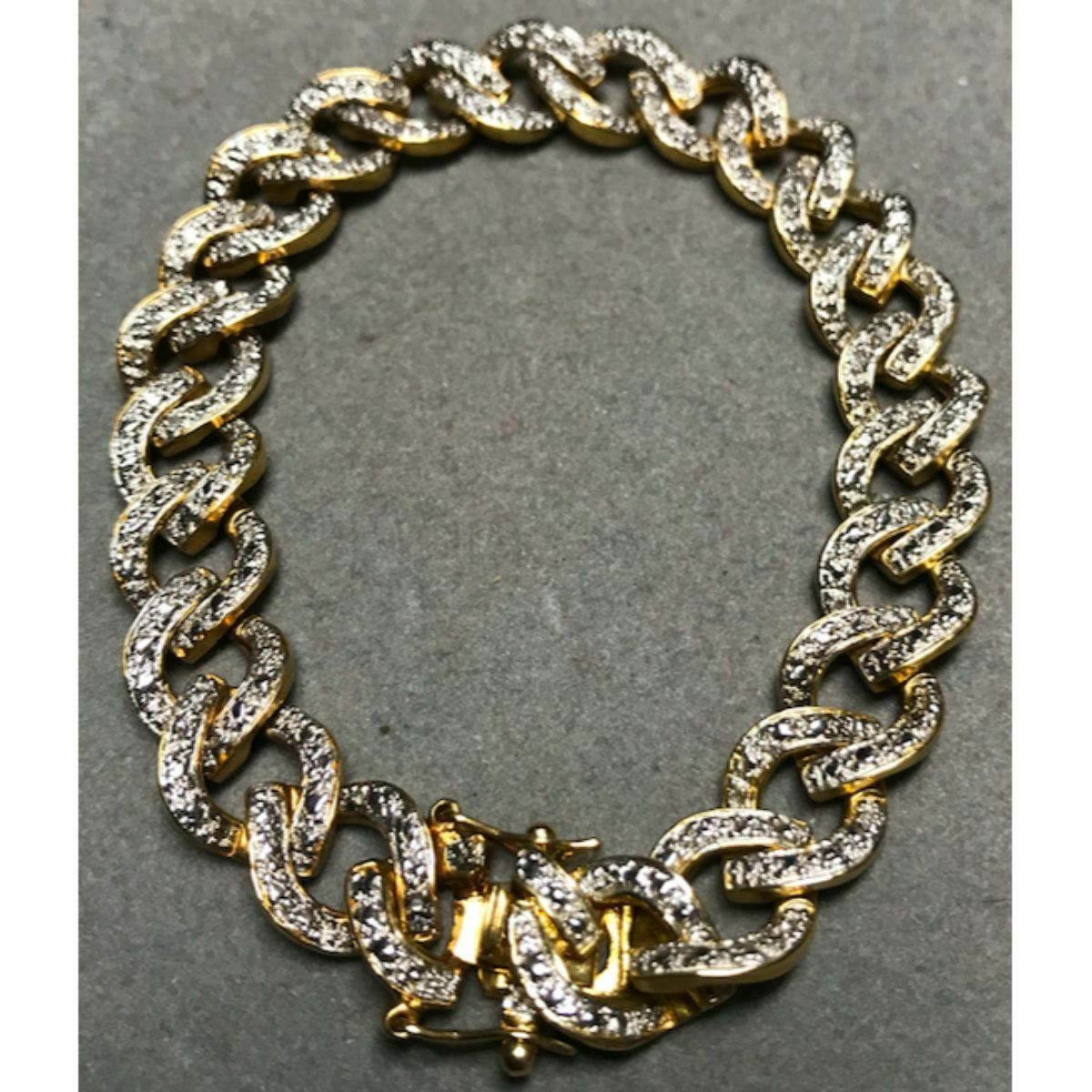 18kt yellow gold plate & sterling silver chain link bracelet embedded with tiny diamond chips 7" bracelet.Â