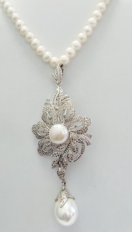 Gold & Sterling Silver Pendant & Earring with Diamond & Pearl