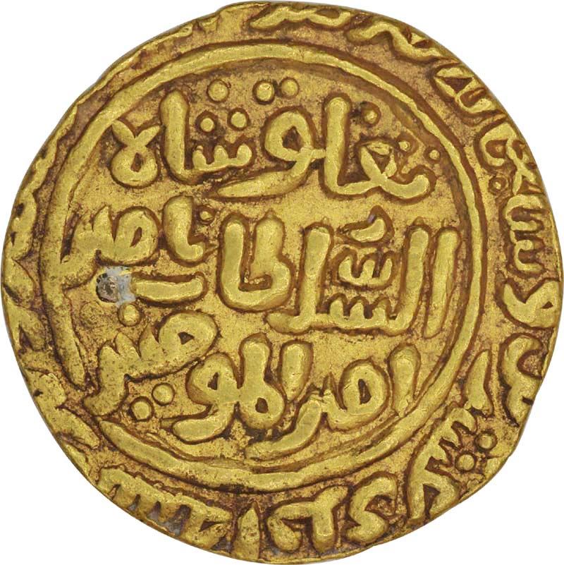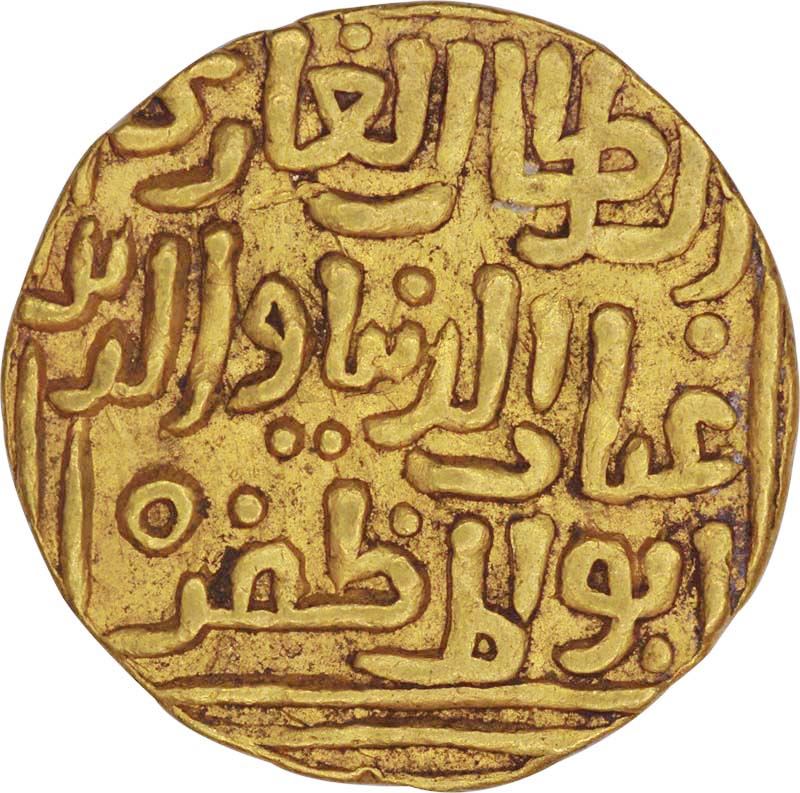 Delhi Sultanate, Ghiyath-ud-Din Tughluq, Qila Deogir, Gold Tanka, Obv: sultan-ul-ghazi ghiyath-ud-din abul muzaffar, Rev: tughluq shah as sultan nasir amir-ul-momineen, 11.10g, 27.42mm, (GG # D302), about extremely fine, Scarce.