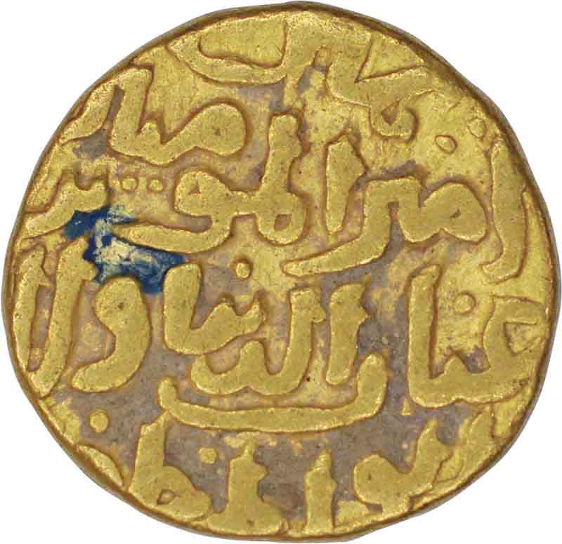 Goron and Goenka in their book mentioned that at thedeath of Muhammad bin Tughluq, Firuz Tughluq was accepted as the next ruler by the army in Sind. In Delhi, Khwaja-i-Jahan was unaware of this and was raised to the throne a would-be son of the later sultan, with the name Mahmud. When Firuz returned to Delhi, Mahmud was set aside.An important thing to note is that this is the only single type of Gold coin of this ruler.