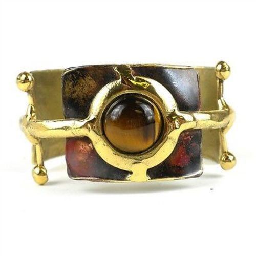 Gold Tiger Eye Ball and Jack Brass Cuff - Brass Images **|**|** South African artisans handcraft this unique cuff of squares of antique brass and copper attached to a polished brass narrow band #BM-303-TG-220232