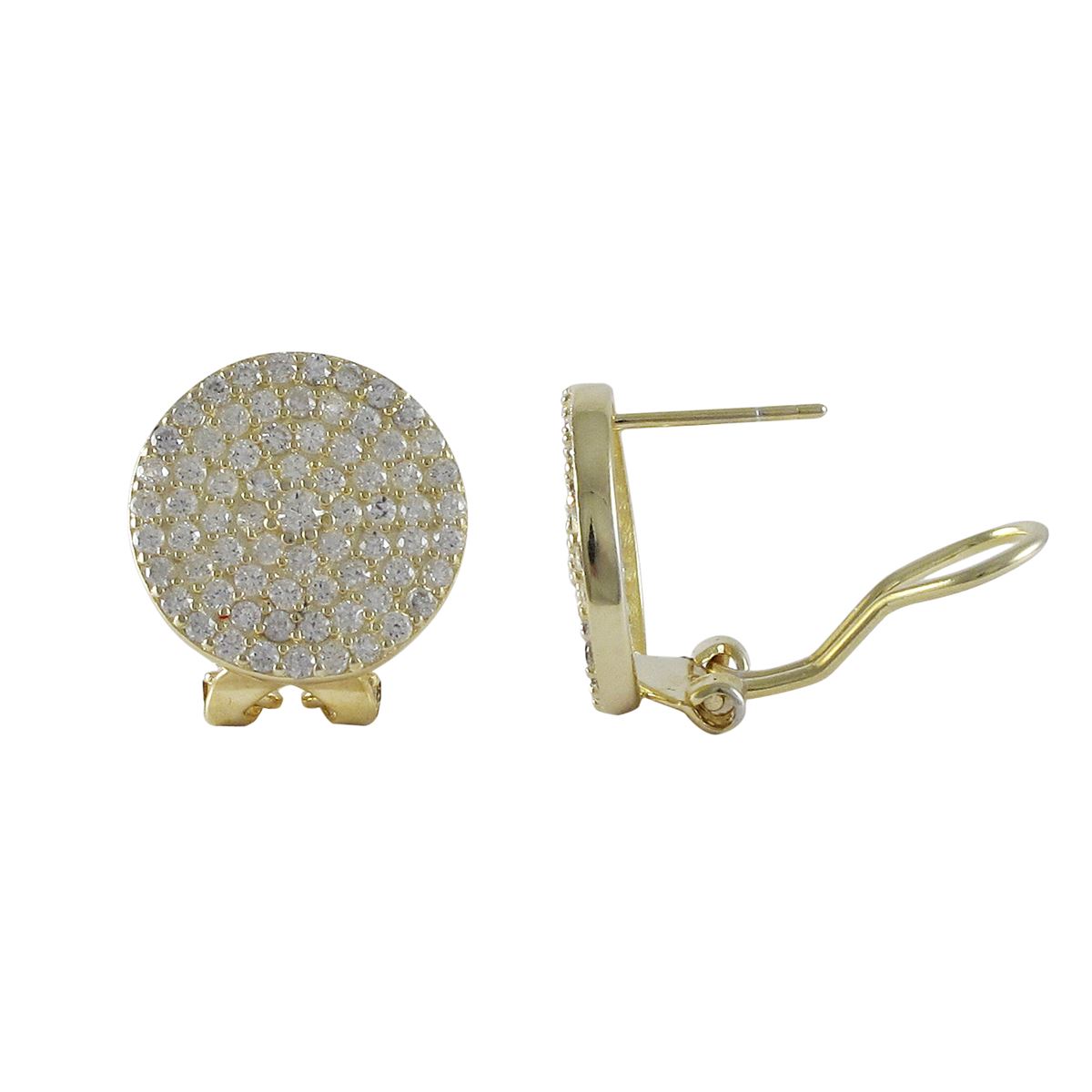 Gold Tone Sterling Silver 16Mm Round CZ Post Clip Earrings