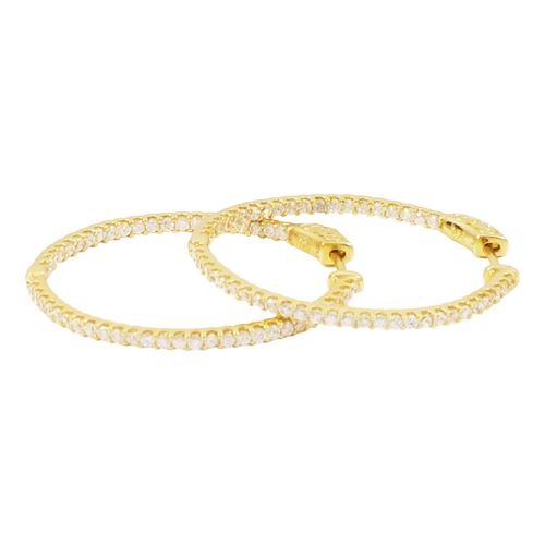 Gold Tone Sterling Silver CZ Hoop Earrings