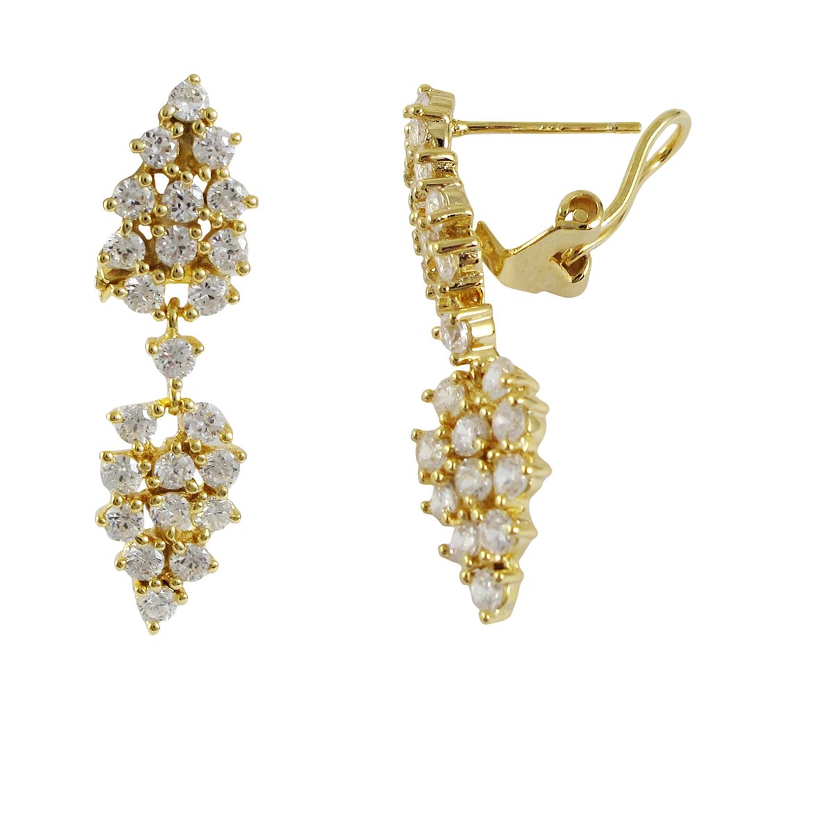 Gold Tone Sterling Silver CZ Post Clip Earrings- 1.34&Quot;