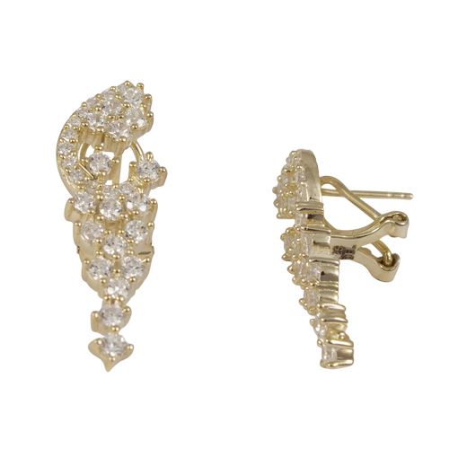 Gold Tone Sterling Silver CZ Post Clip Earrings. 1.2" Long.