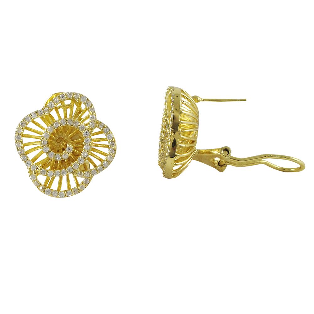 Gold Tone Sterling Silver Flower With CZ Post Clip Earrings- 21M