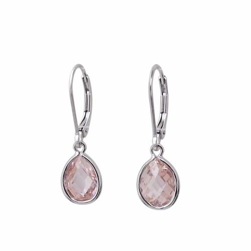 Gold Tone Sterling Silver Pink 8X10 Teardrop Lever Back Earrings 30M Long