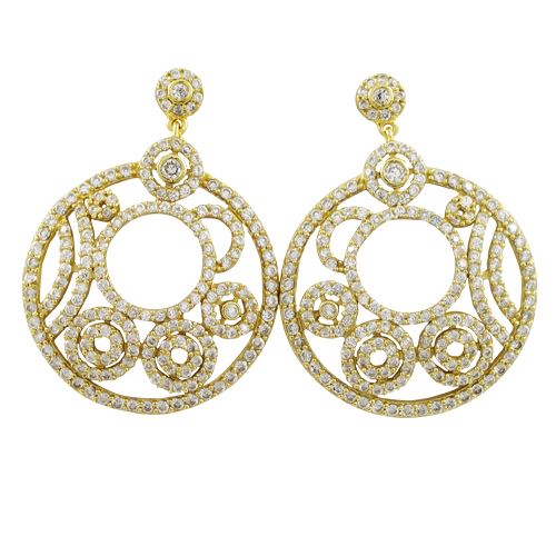 Gold Tone Sterling Silver Post Earrings. Filigree Circle With CZ- 40M