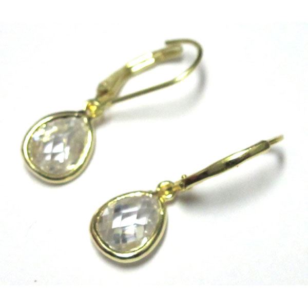 Gold Tone Sterling Silver White 8X10 Teardrop Lever Back Earrings 30M Long