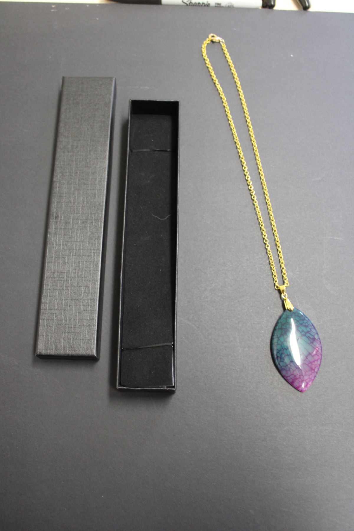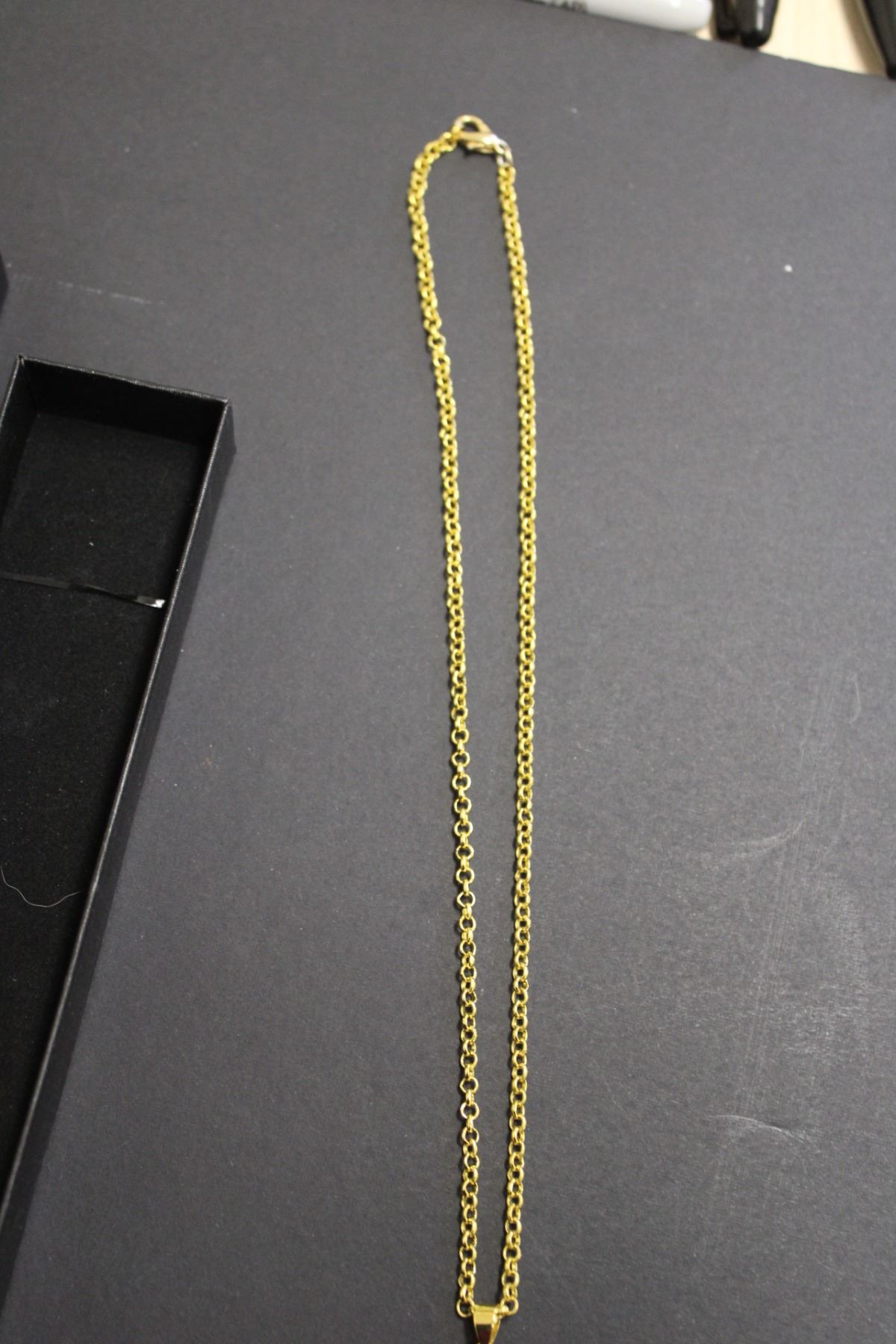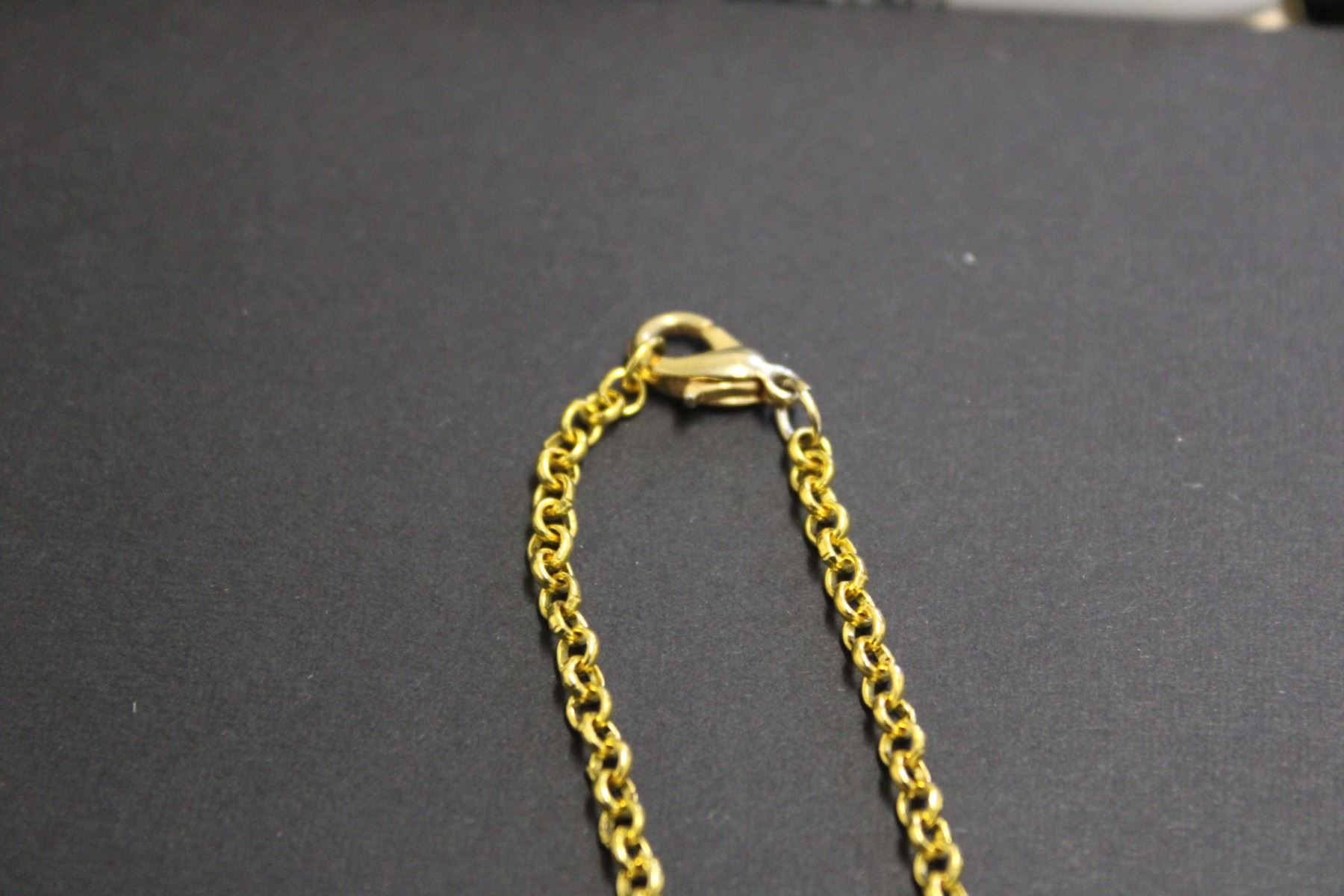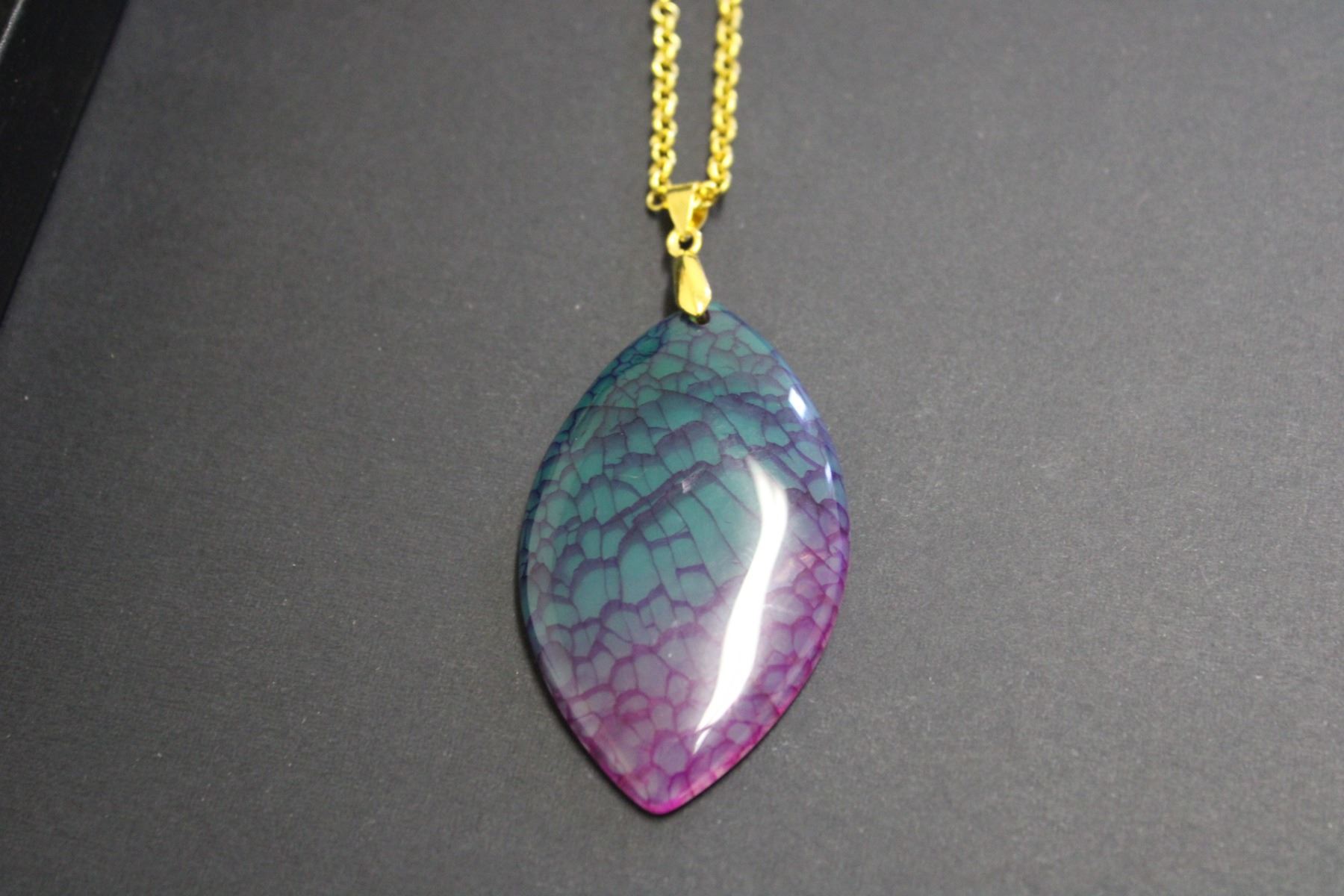 Gold Tone Translucent Green/Pink Pendant with Chain-18:"