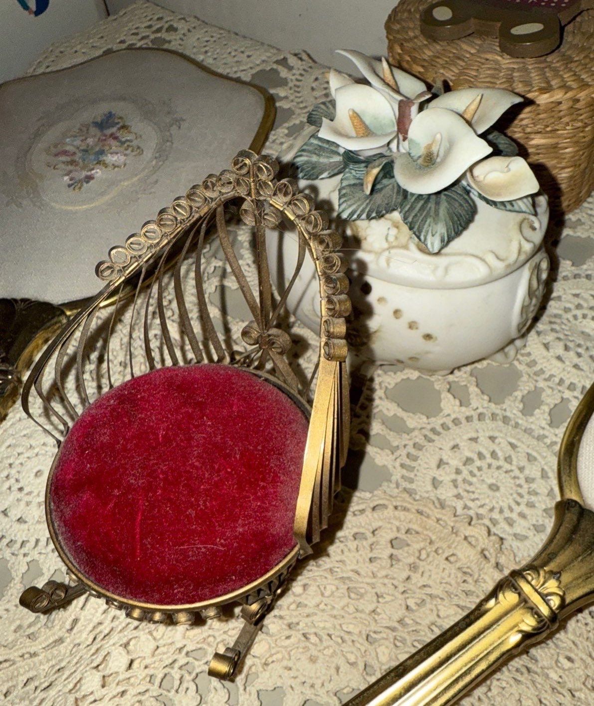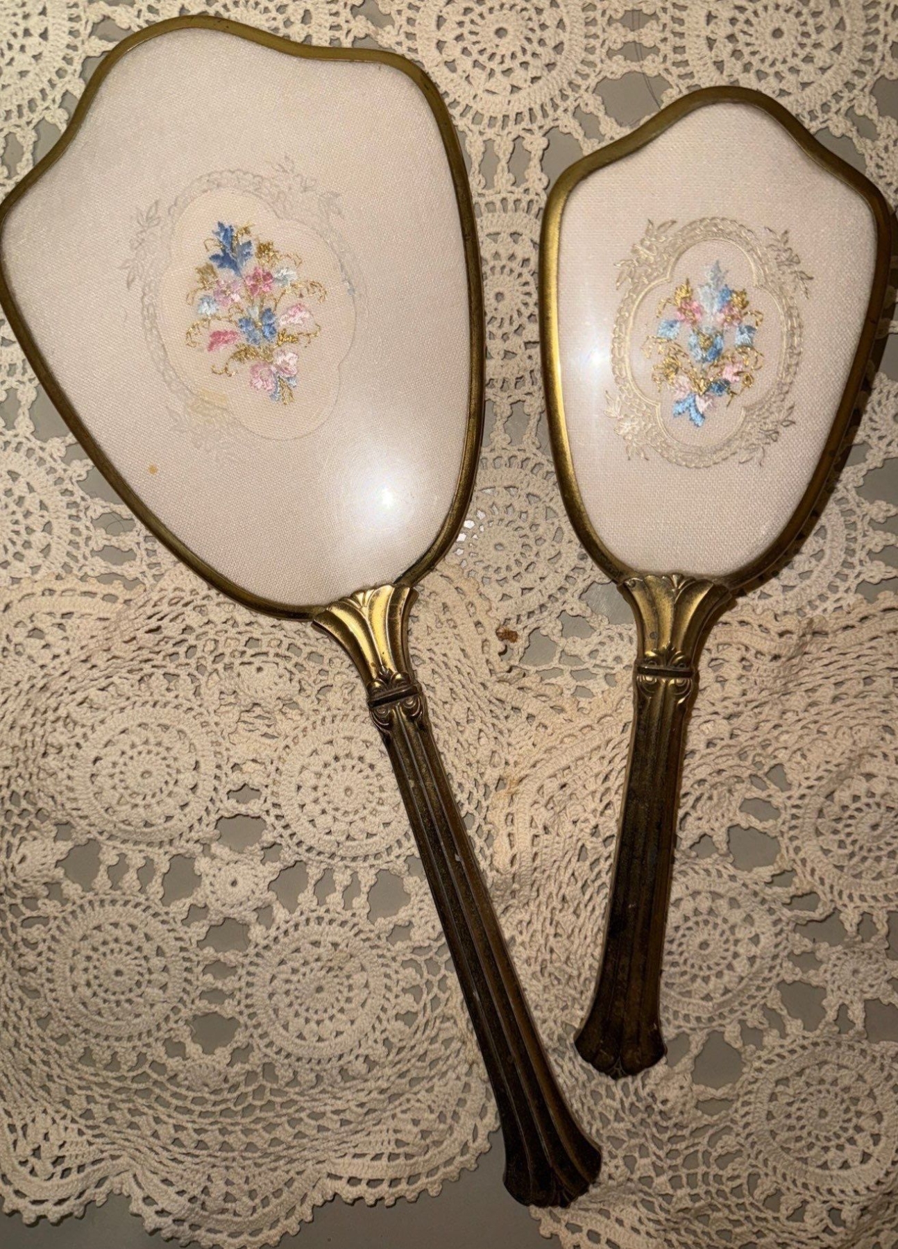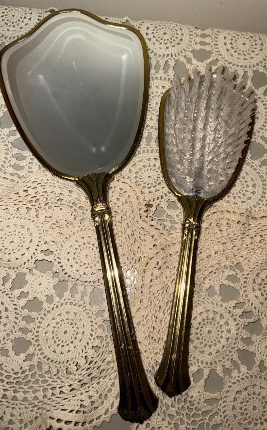 Gold-Toned Vintage Vanity Set (Hand mirror& Brush)-Handpainted