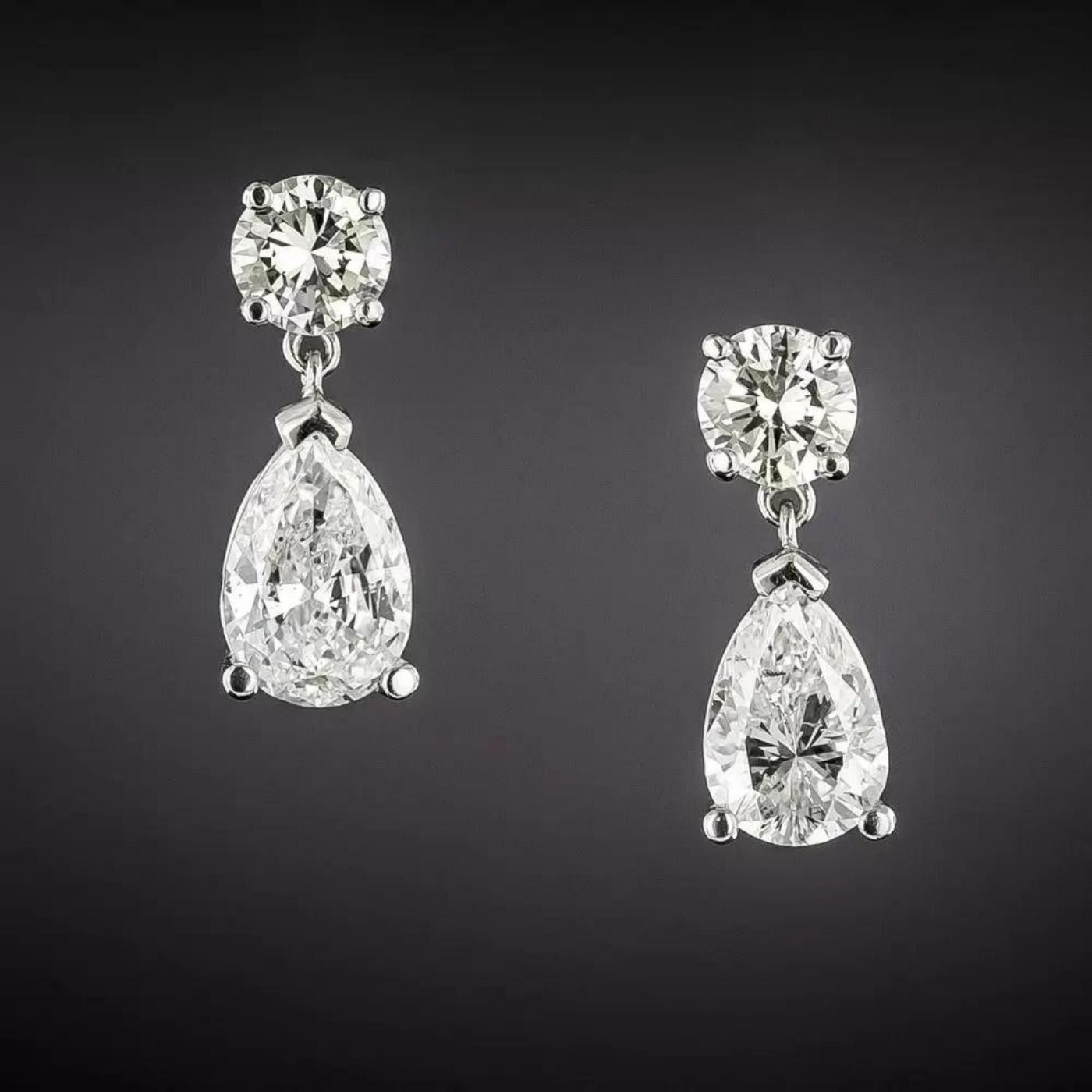 14k Gold (You may choose yellow, white or Rose Gold), Lab Created Pear & Round Diamond 5.06 Cts drop Earrings ....; Clarity F-G/VS.....Igi Certified..( 7 days shipping time after the payment received) ( All Our Diamonds are Guarnteed authentic Lab Grown Diamonds)