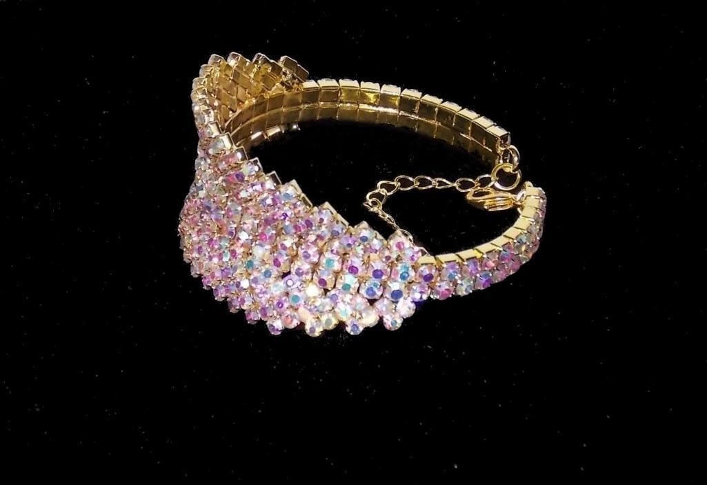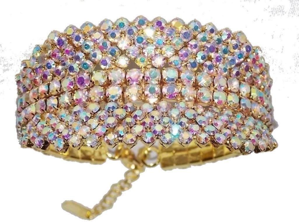 Upscale Designer Jewelry (Costume) Color: Gold Metal: Gold Plated Material: Glass Main Stone: Ab Rhinestone Style: Cuff - 10075-040618-EB-72425