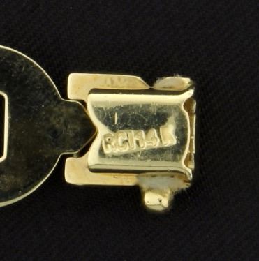 14K yellow gold, it is 8 inches long and 11.8mm wide, with a safety clasp. 12.3g